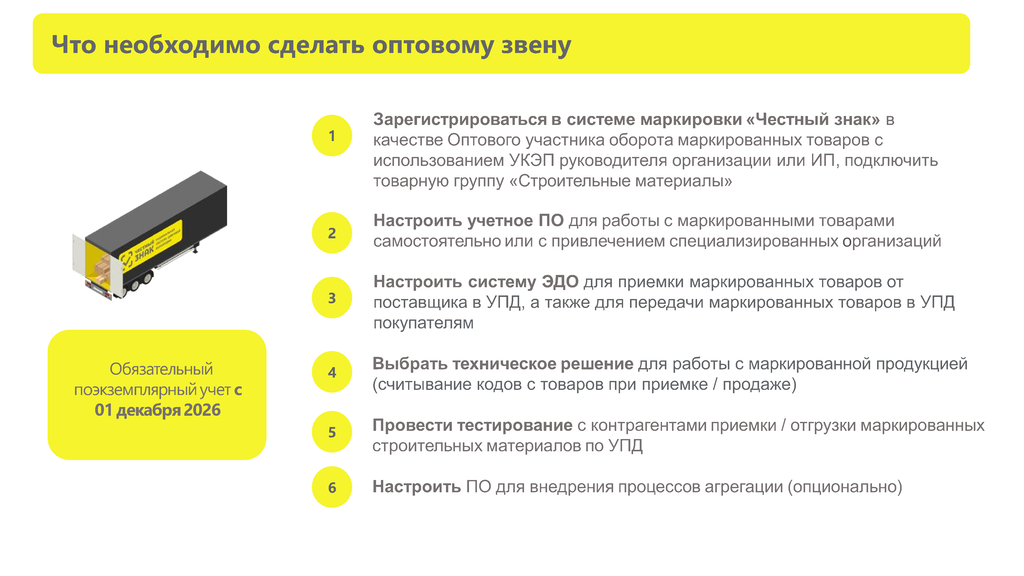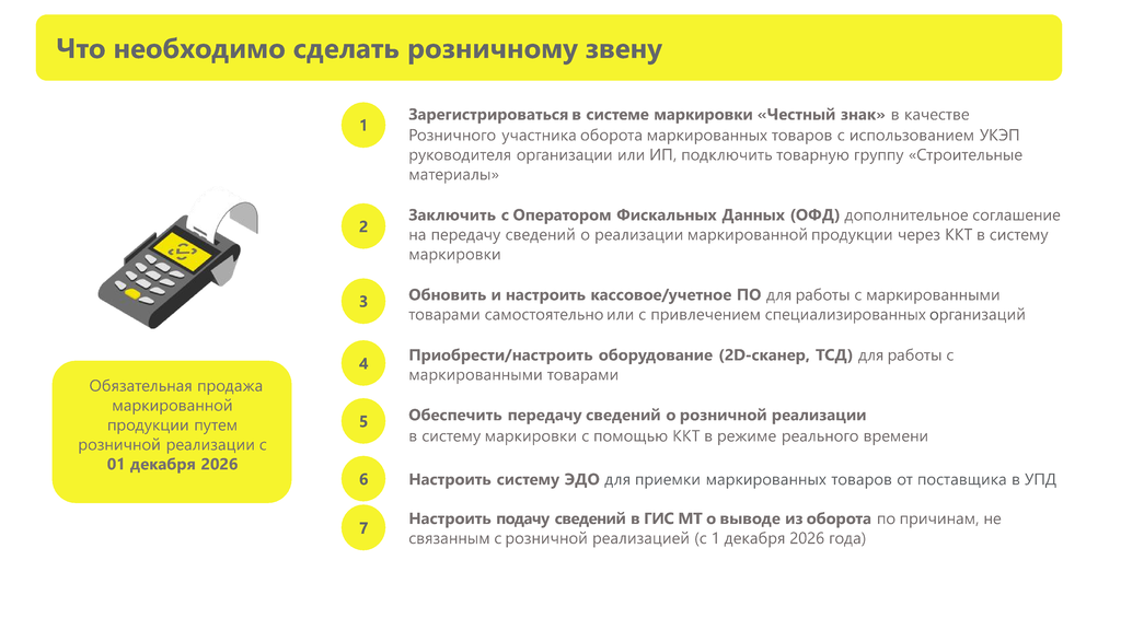 В целях заблаговременной подготовки к работе с маркированными строительными материалами, ООО «Оператор-ЦРПТ» настоятельно рекомендует оптовым и розничным организациям: